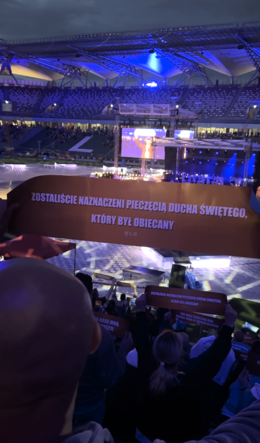 Zamiast gwizdów, wyzwisk i przekleństwa – modlitwa. Zamiast ryku – jednogłośne uwielbienie. Zamiast znanych gwiazd sportowców – wielu charyzmatycznych mówców. Zamiast fal kibiców poruszenie serc i sumień. Pięknie było na chwałę Pana!